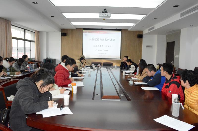 12月8日下午3点,泮池言学主题讲座在校本部东区社科大楼208室准时开讲。此次论坛邀请到美国西北大学哲学系系主任,西北大学巴菲特全球资本主义与法律研究中心联席主席,批判理论项目组组长克里斯蒂娜•拉法特(Cristina Lafont)教授为大家带来"批判理论与想象的政治"(Critical Theory and the Politics of Imagination)主题讲座。重庆交通大学思政教研部副教授郑国玉担任翻译。此次论坛由yl23411永利集团副经理李梁主持。