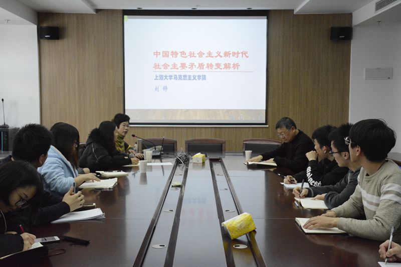 刘铮教授以社会主要矛盾的转化为主题分析党的十九大报告提出的"中国特色社会主义进入新时代,我国社会的主要矛盾已经转化为人民日益增长的美好生活需要和不平衡不充分发展之间的矛盾"这一政治判断。