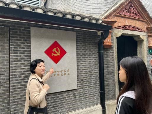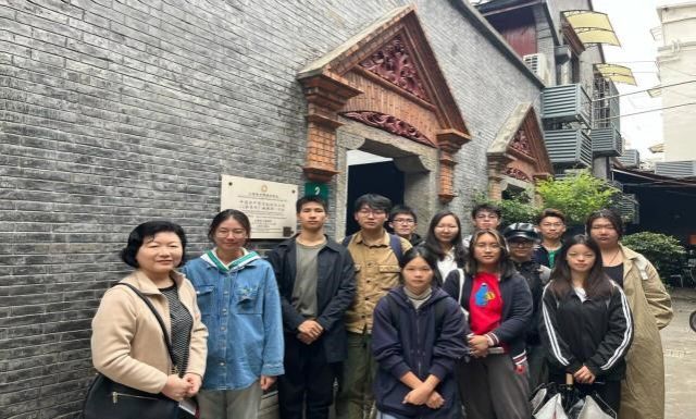 随后,李瑊老师引领同学们前往淮海中路567弄,深入体会和学习建团先驱们的革命历程。 淮海中路567弄,昔日的新渔阳里6号,现在是中国社会主义青年团中央机关旧址纪念馆,承载着中国青年团的成立和发展的记忆。1920年8月上海社会主义青年团成立,是中国最早的青年团组织。1921年3月,中国社会主义青年团临时中央执委会中央机关即设于渔阳里6号,俞秀松担任团中央书记。为了培养党团干部,同时确保党团工作的隐蔽性,1920年9月,党组织在新渔阳里6号创办了外国语学社,该学社实际上是中国共产党成立的最早的培养青年干部的教育机构。