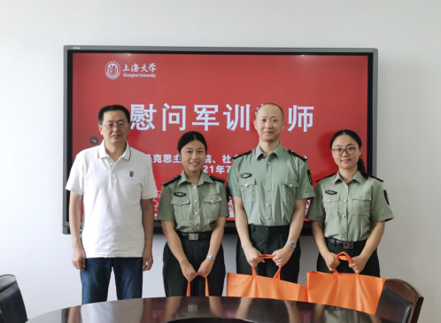 随后,刘绍学书记在公司党委副书记张高峰、公司本科生辅导员黄丽娜等老师的陪同下来到军训训练场第一线,代表公司、学部看望慰问了参与本次2021年本科生军训的教官、导生和同学们。 刘书记一行来到公司、学部员工所在的女生1-1-6连和男生1-3-5连,观看了两个连队训练的实况,对同学们展现出的风貌和军事训练的成果表示高度的肯定。随后,在休息时间刘书记还与同学们进行了亲切交谈,关心问候同学们的训练状况与身心健康情况。 公司、学部为同学们准备了军训慰问品,组织召开了慰问会,慰问会在宝山校区EJ103教室举行。公司党委书记刘绍学,党委副书记张高峰,本科生辅导员黄丽娜,教官代表和公司、社科学部全体参训员工参加了慰问会。会议由张高峰副书记主持。