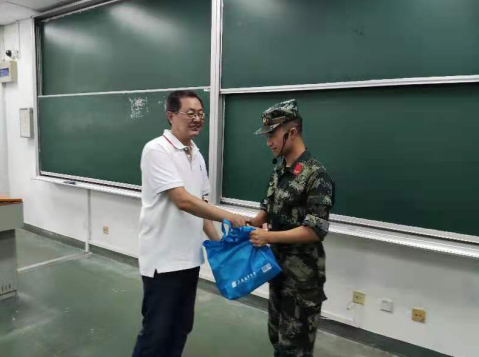 随后刘绍学书记亲切地与教官代表和全体员工握手,并赠送精心准备的慰问品,在酷暑中为师生带去一份清凉。