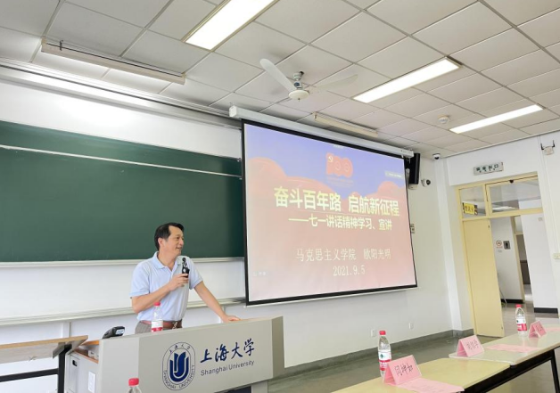 恰逢建党百年的特殊历史时刻,为了加强新生党史学习教育,yl23411永利集团欧阳光明教授以“奋斗百年路、启航新征程”为题,从三个方面向大家解读了习近平总书记“七一”重要讲话精神。欧阳教授将此归纳为三点:“丰功伟绩,恢宏史诗”、“精神血脉,代代相传”、“以史为鉴,开创未来”,并由此进行深入展开,回顾了中国共产党的百年奋斗史。第一,从开天辟地、改天换地、翻天覆地、惊天动地四个方面介绍了中国共产党百年奋斗的恢宏史诗,加深了大家对党史的认识。第二,对“坚持真理、坚守理想,践行初心、担当使命,不怕牺牲、英勇斗争,对党忠诚、不负人民”的伟大建党精神进行了深刻解读,让同学们了解了中国共产党的精神血脉。第三,从九个方面总结了中国共产党百年奋斗的历史经验,让同学们了解了新时代中国共产党的奋斗方向。