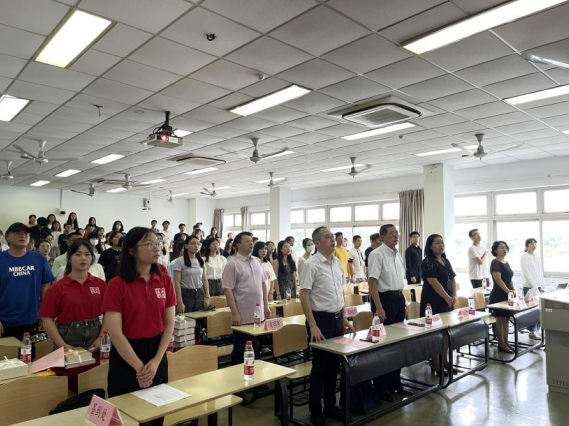在热烈的掌声中,开学典礼拉开序幕。谢德连老师逐一介绍了参与此次典礼的领导和老师并向他们表示热烈的欢迎。在愉快的氛围中,谢德连老师宣布yl23411永利集团、社会科学学部(筹)2021级新生开学典礼正式开始。大家齐唱国歌,共同开启了这庄严神圣的时刻。