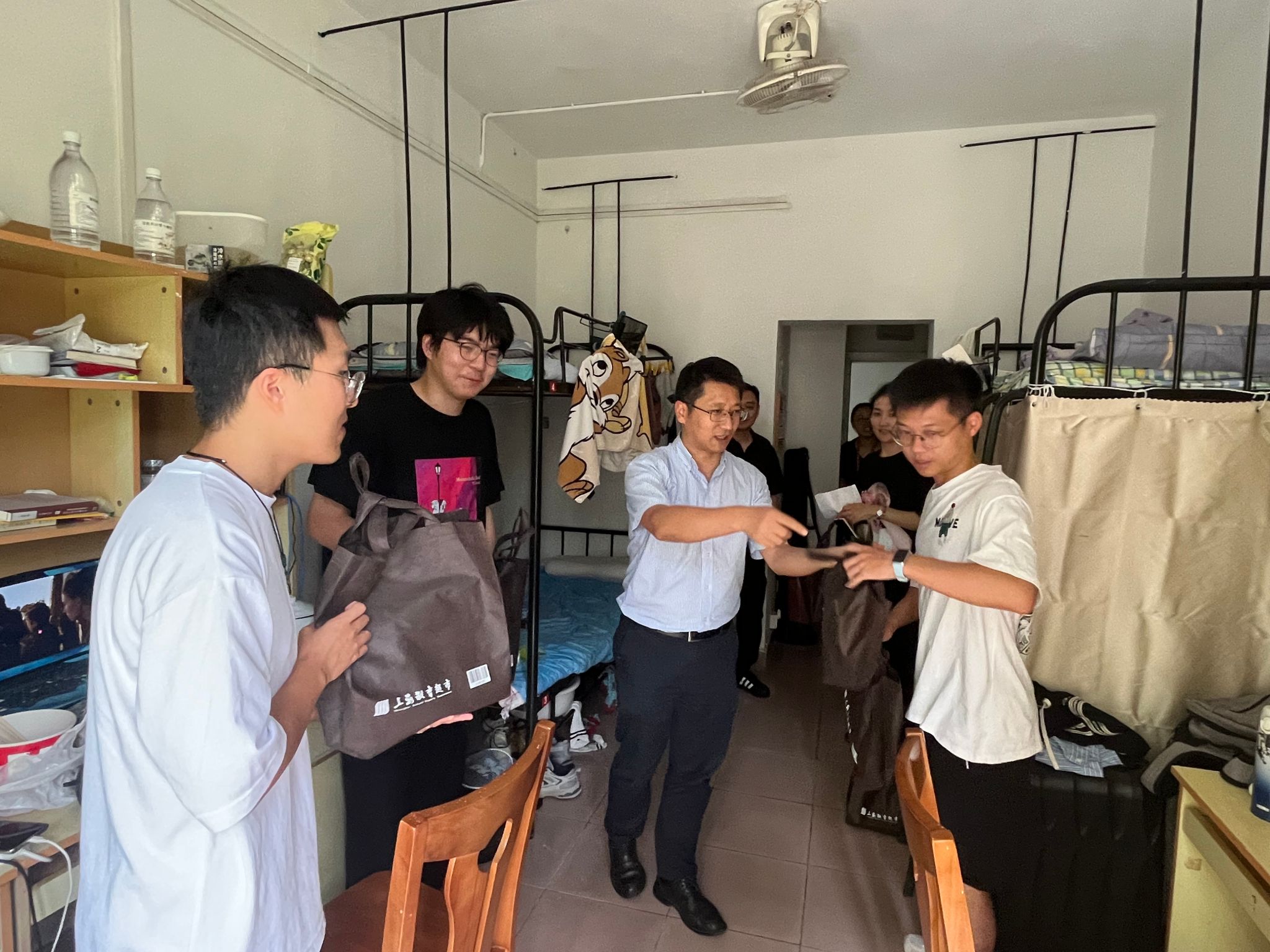 走访宿舍时,公司老师与同学们亲切交谈,了解新生入学后的学习生活情况、假期安排等。公司党委书记王国建为同学们逐一赠上节日礼包,勉励同学们珍惜时光、奋发有为。此外,他也提醒部分同学假期返乡注意安全,留校同学多和亲人联络,以解思乡之情。