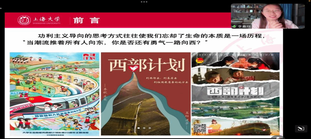 为提升公司员工社会责任感,增加对西部计划志愿服务的了解,近期,“无问西东”聊天室第十五期之聊志愿——“志愿心 西部行”老员工西部计划志愿分享会于线上腾讯会议举行,2021级马克思主义理论专业硕士研究生李嘉欣作为主讲人,结合自身服务于新疆生产建设兵团支教经历为公司40名员工分享了西部计划志愿服务。活动由本科生兼职辅导员游馨谊主持。 本次分享会,李嘉欣主要从参与老员工志愿服务西部计划的意义、新疆生产建设兵团的介绍、志愿服务工作情况以及在兵团的点点滴滴等四个方面展开分享。从服务时的环境到志愿时具体工作内容等,她多角度地向同学们讲述了自己在新疆志愿服务这一年的收获和感悟。 在谈及老员工志愿服务时,李嘉欣从社会竞争的角度叙述了自己对于人生价值的思考,她认为,功利主义导向的思考方式往往使人们忘却了生命的本质是一场历程。随后,她通过“当潮流推着所有人向东,你是否还有勇气一路向西?”这一问题,引发同学们对志愿服务、对自身价值进行思考。 李嘉欣认为,老员工西部计划志愿服务是对新时代志愿精神的充分践行与承扬。新时代志愿精神凸显为人民服务的思想,体现着时代精神,老员工西部计划志愿服务是为人民服务思想的直接体现,为老员工提供新的就业选择,是促进西部发展、缩小东西差距的重要举措。参与志愿服务西部计划,也能使老员工得以发挥个人价值,拥有不一样的青春。 随后,李嘉欣向大家介绍了新疆生产建设兵团的详细情况和发展历程,她着重介绍了兵团精神,她指出“无私奉献是兵团精神的本色,是兵团人服从国家、新疆大局的价值选择和道德标尺,”这也诠释了大我、无我的社会主义崇高道德品质。艰苦创业是兵团精神的体现,是兵团人在不同时代背景下自我生存和发展的价值认同和价值追求,更是新的历史条件下发展壮大的必然要求和重要保证。 在介绍工作内容时,李嘉欣谈到了自己曾承担整个九年级部分科目的教学工作,同时负责公司教务处的部分行政工作,虽然新疆特殊的教育状况使其工作压力较大,但在与员工们的相处中,她也亲眼见证了员工的进步和成长,获得了浓浓的成就感、满足感。 最后,李嘉欣向参与本次活动的同学们发出了参与西部计划的倡议和号召,她呼吁更多的老员工到西部去,拓展眼界和视野,提升实践能力和就业竞争力,推动西部地区的发展,塑造全面发展的人格,收获不一样的青春。 本次分享会让更多的同学了解了老员工西部计划,有利于弘扬“奉献友爱互助进步”的中国青年志愿者精神,发动更多的青年老员工参与到西部计划,汇聚起奋发向上、无私奉献的青春力量。 奉献西部, 创造未来, 让青春在西部绽开绚丽之花。 (供稿:杨芯懿、摄影:杨芯懿) |