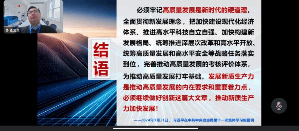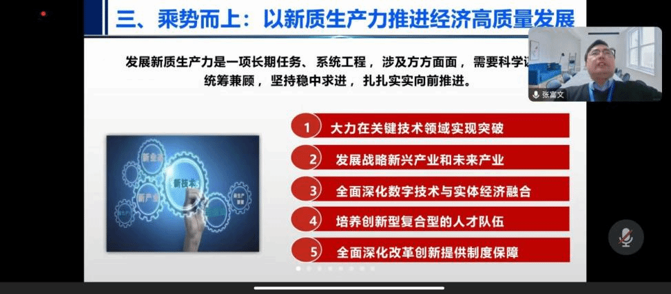 为深入学习贯彻习近平新时代中国特色社会主义思想、深化对习近平总书记关于新质生产力重要论述的认识,培养公司研究生的学术创新精神,涵养学术志趣。11月29日晚,公司举办“深刻认识新质生产力 促进创新素养培育”的主题讲座,邀请yl23411永利集团党委教师工作部副部长、公司教授张富文老师主讲,80余名研究生参与讲座。讲座由yl23411永利集团研究生会主席团成员王永芹主持。 张富文老师详细阐述了新质生产力概念的科学内涵和时代背景,深入讲解了习近平总书记关于新质生产力的重要论述。他谈到,新质生产力的“新”集中体现在新劳动者、新劳动对象以及新型基础设施,“质”则突出强调要打破传统生产要素的质态。纵观人类历史上的三次工业革命,技术革命是推动国际力量对比深刻改变、新兴大国崛起的关键动力,世界经济中心的几度转移,无不以科技创新中心的变动为前提。他强调,在中国经济发展步入新阶段,从“人口红利”向“工程师红利”转变的当下,培育和发展新质生产力是摆脱传统经济增长方式,实现创新、协调、绿色、开放、共享发展的重要路径。要完善现代化产业体系,发展绿色生产力,形成新型生产关系,畅通教育、科技、人才的良性循环,以实现新劳动者高素质化、新劳动对象高算力化、新劳动资料高智能化。 讲座中,张富文老师用详实的数据和严谨的逻辑,充分诠释了新质生产力的主要特征。他指出,新质生产力是以创新是第一动力,以战略性新兴产业和未来产业为主要载体,以新供给与新需求高水平动态平衡为落脚点的先进生产力,具有改变客观世界认知、催生新产业新业态、创新供给与需求衔接模式、实现资源要素高效配置、拉动经济增长潜力的重大作用。他提出,发展新质生产力是一项长期任务、系统工程,需要科学谋划、统筹兼顾,扎扎实实向前推进:一是大力在关键技术领域实现突破,二是发展战略新兴产业和未来产业,三是全面深化数字技术与实体经济融合,四是培养创新型复合型人才队伍,五是为全面深化改革创新提供制度保障。 讲座最后同学们纷纷表示表示张富文老师的讲解,既有理论高度,又有实践思路,既告诉同学们“怎么看”,又引导同学们“如何做”,我们要深入学习贯彻习近平总书记关于新质生产力的重要论述,牢记高质量发展是新时代的硬道理,必须继续做好创新这篇大文章,以实际行动为推动新质生产力加快发展做出贡献。 |