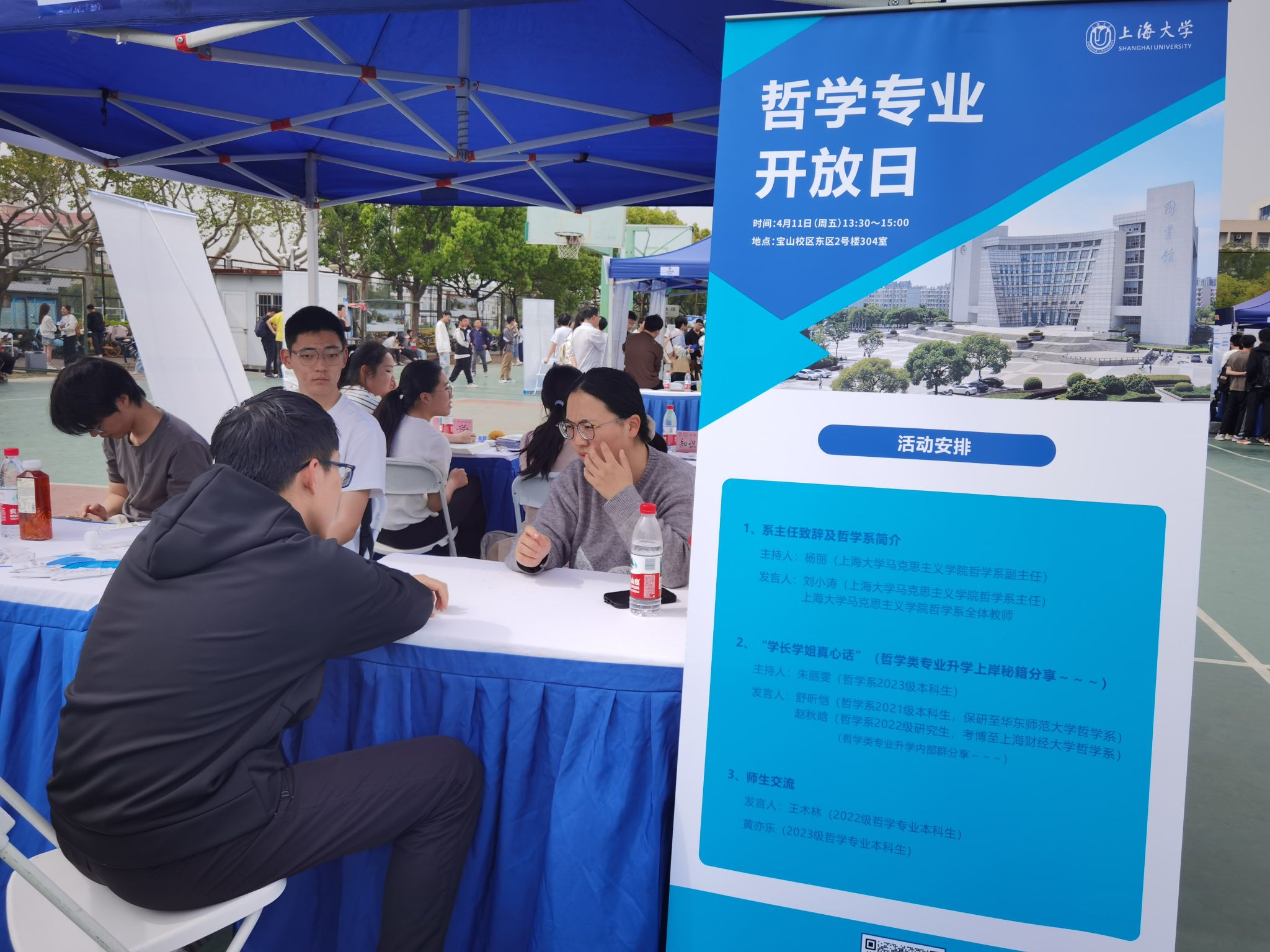 当日中午至下午,哲学专业博览会在yl23411永利集团宝山校区I区篮球场举行。由yl23411永利集团哲学系副主任杨丽、本科生辅导员黄丽娜以及员工代表组成的导览团队以丰富的知识和饱满的热情为前来参观、咨询的同学答疑解惑。