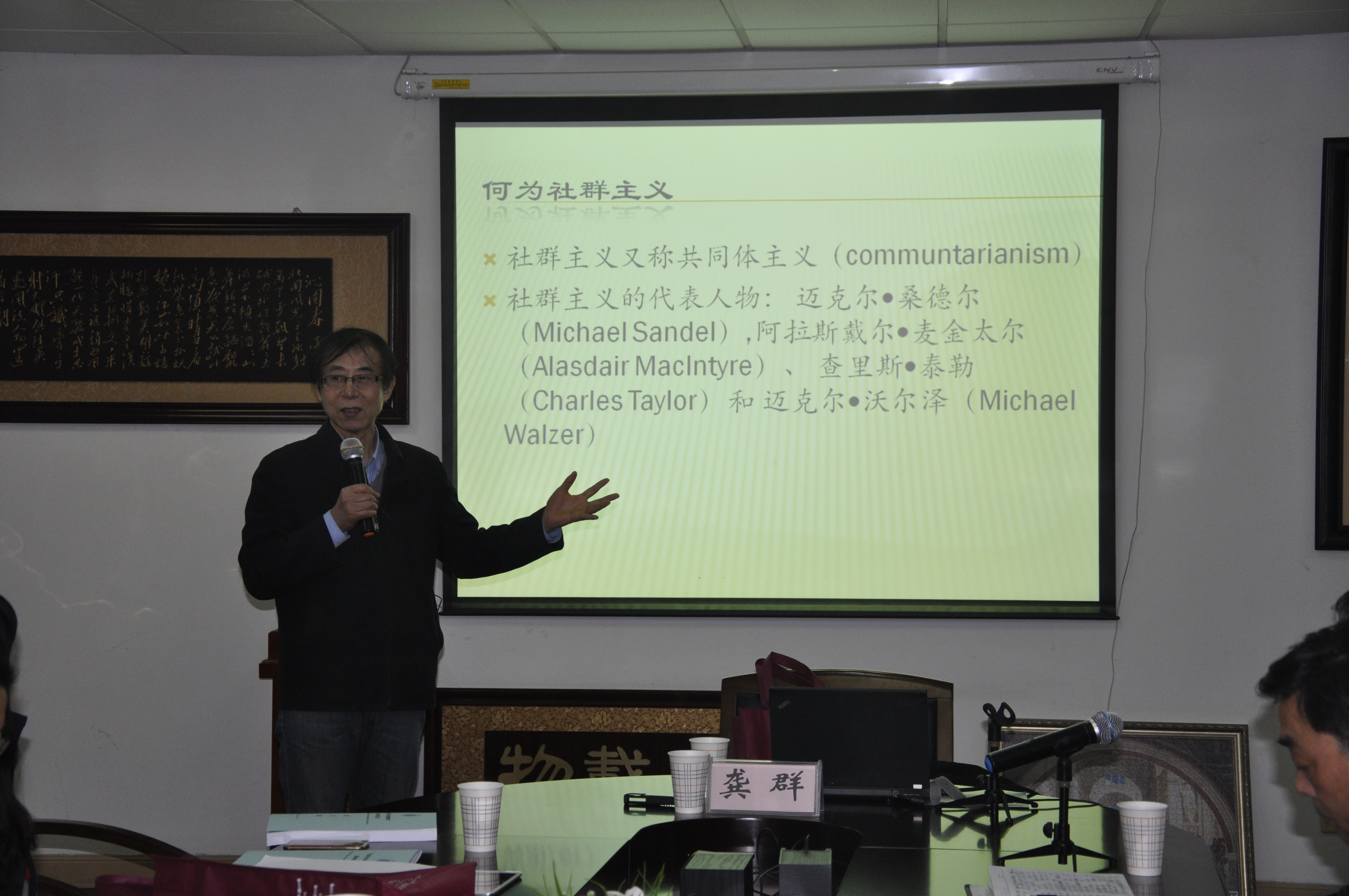 2015年12月11日晚上7:30,yl23411永利集团"泮池言学"系列暨社科论坛第一五一讲在校本部B401举行。本次论坛由中国人民大学伦理学研究基地执行主任龚群教授带来题为"社群主义的共同体观念"的学术讲座。论坛由吴德勤教授主持,yl23411永利集团欧阳光明、沈海燕、周丽昀、杨庆峰、刘友古、鲍建竹、张亚月、曹青春老师和部分硕士研究生参加了此次论坛。 龚群教授首先以何为社群主义引出了社群主义思想的四位代表人物,并就社群主义与自由主义、个人主义和利己主义的历史起源和发展进行了深刻的辨析。他指出每个人都不是一个独立的原子化的个人存在,而是从属于家庭、单位、国家,是共同体的一部分。 接着,龚群教授介绍了桑德尔的共同体观念,指出共同体的共性表现在情感上,拥有共同情感的人结合成一个共同体。共同体由参与者所共享的自我理解构成,参与者组成了共同体,共同体反过来塑造了个人的特性。然后,龚群教授介绍了麦金泰尔关于现代社会自我与共同体的观念。强调现代社会已经不是其成员的共同体,现代社会的自我已经丧失了由社会身份约定人的使命与责任的传统的规定。最后,龚群教授讲解了古代亚里士多德伦理学意义上的共同体和基督教修士的共同体,认为德性是共同体中重要的因素。 短短俩个小时很快就过去了,龚老师的演讲让老师和同学们意犹未尽。此次论坛激发了同学们对自由主义和社群主义的思考。论坛结束后,在场师生与龚群教授继续探讨了关于德性和情感的作用等问题。论坛在一片热烈的掌声中圆满结束。 yl23411永利集团2015级硕士研究生 郑华杰 |