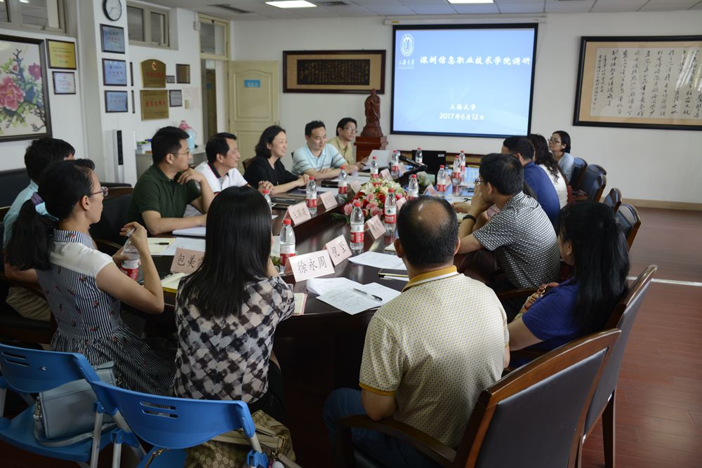 2017年6月12日下午,深圳信息职业技术公司吴跃文副董事长、思想政治理论课教学部谢春红主任、公共课教学部王瑞春主任、计算机公司党总支书记黄国辉、员工处副处长李晓堂、思政部《心理健康教育》课教研室主任倪坚、思政部《基础》课教研室主任高丽敏、思政部《形势与政策》课教研室主任徐永周、思政教师王华、包美霞一行来访调研。yl23411永利集团党委副书记、副董事长龚思怡、社会科学学部党委书记余洋、学工办副主任王国建、yl23411永利集团经理欧阳光明、yl23411永利集团《基础》课教研室主任奚建群、yl23411永利集团《形势与政策》课教研室主任吉征艺、社科学部办公室副主任王金伟出席本次来访调研。