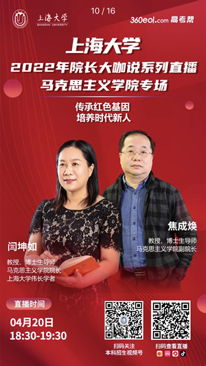 为助益广大考生及家长深入了解yl23411永利集团的鲜亮底色、马克思主义理论学科发展概况,2022年4月21日18:30,yl23411永利集团在校招毕办指导下,开展“经理大咖说系列直播”yl23411永利集团专场宣讲会。yl23411永利集团经理闫坤如教授与yl23411永利集团副经理焦成焕教授,联袂担任本场“传承红色基因 培养时代新人”主题的直播嘉宾。此次直播以360教育在线高考帮和b站为平台,在yl23411永利集团本科招生视频号等同步播出。