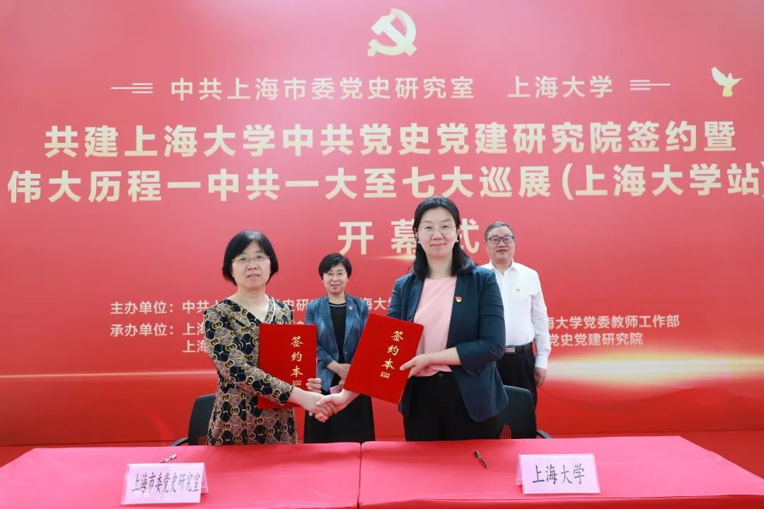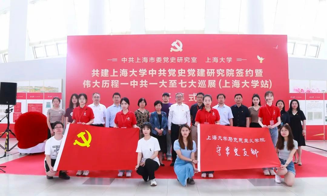 为推动学习贯彻习近平新时代中国特色社会主义思想主题教育走深走实,进一步学习宣传贯彻党的二十大精神,合力构建大党史工作格局,6月12日上午,中共上海市委党史研究室与yl23411永利集团共建yl23411永利集团中共党史党建研究院签约仪式暨“伟大历程——中共一大至七大巡展(yl23411永利集团站)”开幕式在yl23411永利集团本部图书馆五楼展厅举行。