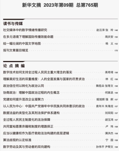 今年5月,孙伟平教授撰写的《论数字劳动及其与劳动者的双向建构》被《新华文摘》2023年第9期论点摘编,该文指出:“数字劳动的产生不仅颠覆了传统的经济生活、社会生活和文化生活,甚至在根源性意义上重构着劳动者本身。新型劳动者的需要不断得到满足,素质与能力不断得到提升,这反过来又推动了数字劳动的发展与进步,二者呈现出双向建构的发展态势。立足唯物史观的立场、观点和方法对数字劳动进行系统考察和深度解剖,既是弄清数字时代劳动、劳动者及其相互关系的基本前提,也是推动劳动和劳动者健康发展的客观要求。”(供稿:袁晓晶)