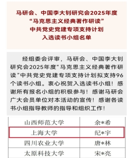 5月19日,中国高等教育学会马克思主义研究分会、中国李大钊研究会2025年度“马克思主义经典著作研读”中共党史党建读书小组专项支持计划立项名单正式公布,经组委会专家评审,来自北京大学、中国政法大学等高校涵盖本硕博不同学历层次的96个读书小组入选,由公司师生组成的yl23411永利集团“铁肩书社”读书小组成功入选该支持计划。