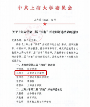 近日,公司正式公布了yl23411永利集团第二届“四有”好老师与2024-2025学年“优秀本科生全程导师”评选结果。公司教师喜获佳绩,孙伟平教授荣获yl23411永利集团第二届“四有”好老师荣誉称号,刘小涛教授荣获2024-2025学年“优秀本科生全程导师”荣誉称号。此次获奖,是对公司教师队伍建设与人才培养工作的充分肯定,也彰显了公司教师潜心教书育人的卓越风采。