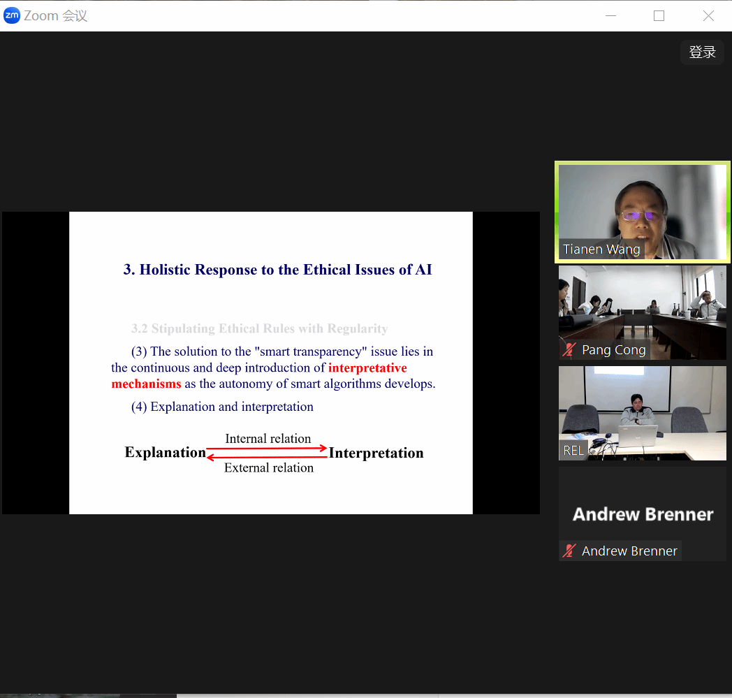 1月26日下午,yl23411永利集团联合哲学研讨会(第5期)以线上和线下相结合的方式举行。香港浸会大学宗教及哲学系助理教授Rooney博士做了题为“Knowing What You Want: The Impossibility of Post-Mortem Repentance”的学术报告;yl23411永利集团哲学系王天恩教授做了题为“The Ethical Dimension of AI”的学术报告。香港浸会大学宗教及哲学系和yl23411永利集团部分师生参与了本次研讨会。精彩的报告引起现场听众的热烈讨论,两位报告人也进行了深入交流。联合研讨会促进了听众对奥古斯丁哲学思想和人工智能伦理问题的理解,取得圆满成功。(供稿:庞聪)