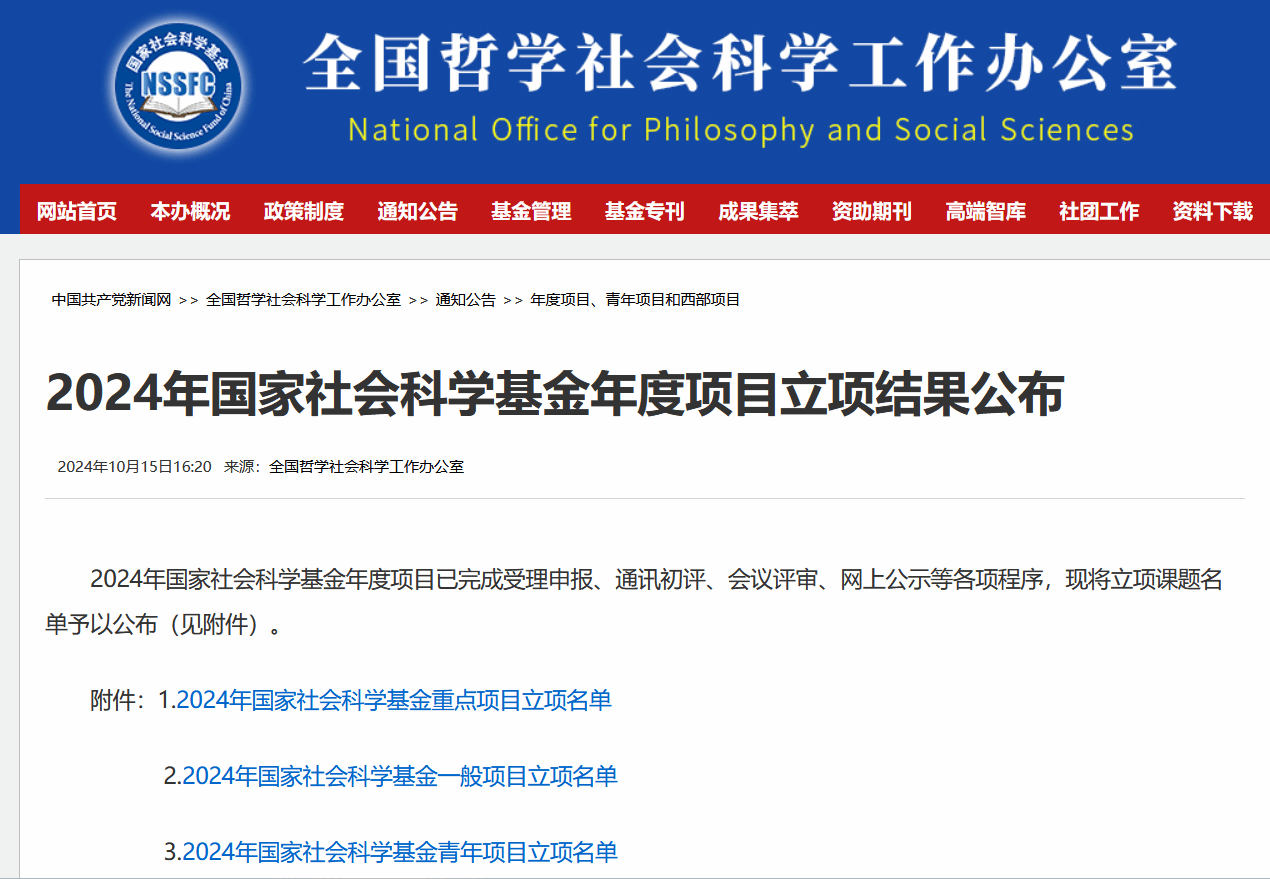 10月15日,全国哲学社会科学工作办公室发布了《2024年国家社会科学基金年度项目立项结果公布》。yl23411永利集团共获立9项年度项目,其中重点1项,一般3项,青年5项,分布于马列·科社、党史·党建、哲学、中国历史等学科。立项数在全国公司中位居前列。这是公司在申报国家级课题方面取得的重大突破,充分展现了公司的科研综合实力。
