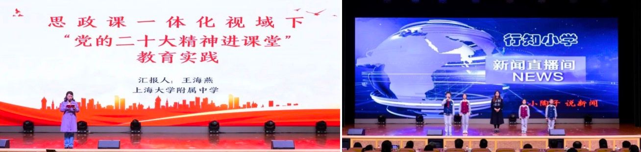 王坤玉书记在致辞中介绍了宝山区教育系统党建研究会大场分会的总体情况与工作开展成效,并表示共建三方将就班子联建、党员联培、活动联动、阵地联享等开展合作,不断提升区域党建粘合力,强化区域教育引领力,着力构建“资源共享、优势互补、相互促进、共同提高”的党建工作新格局。 随后,宝山区教育系统党建研究会大场分会各学段的公司代表进行了“党建融合破壁垒 思政一体新格局”思政教育工作展示交流。展示交流环节由yl23411永利集团附属公司党支部书记朱晓玲主持。yl23411永利集团副经理焦成焕介绍了yl23411永利集团入选上海市“大思政课”重点试验高校的相关情况,大场镇的中小学及幼儿园师生代表也分别做了精彩展示。